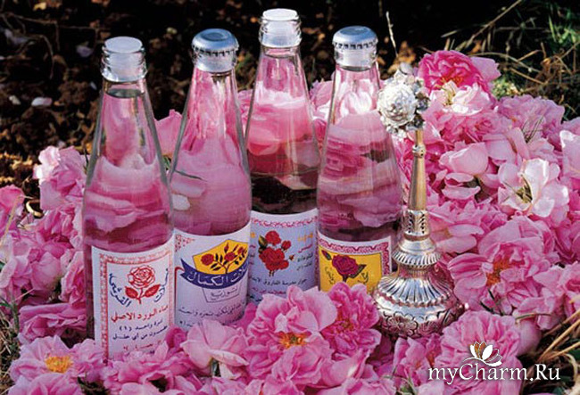 Для того, чтобы протирать кожу "розовой" водой, надо развести 5 капель розового масла на 100 мл. дистиллированной или минеральной негазированной воды.