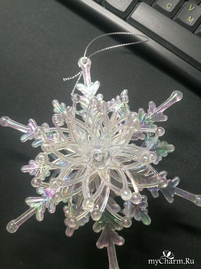 Такая волшебная, просто сказочная снежинка, которая непременно займет место на моей елочке. Фото, наверное, не передает весь блеск и воздушность - она очень красивая.