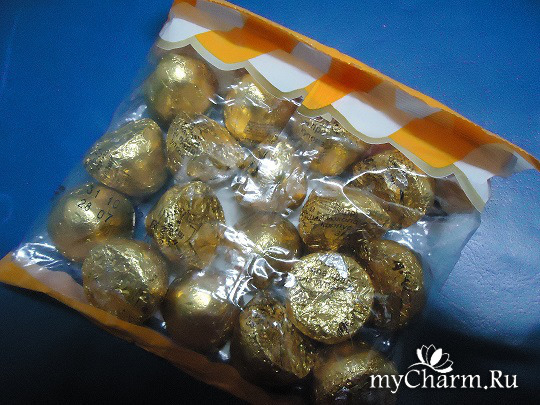 Конфеты "Золотые купола" фабрики Рот-Фронт! Еще не пробовала! По-новогоднему блестящие! Сфотографировала сзади, чтобы конфеты смотрелись лучше, без наклеек, загораживающих обзор!
