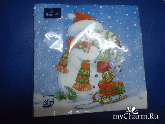 Праздничные салфетки! На рисунке - малыш обнимает Снеговика!