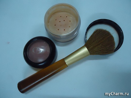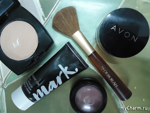 На этом фото - минеральная пудра от AVON, румяна российского бренда ART-VISAGE (кисточка есть в упаковке) и кисть для пудры итальянской фирмы DEBORAH: