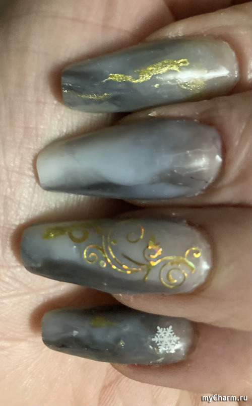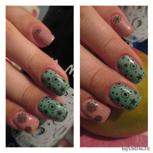 У меня сиренево-мятный со звёздами и снежинками, решила вчера себя порадовать, с мая не красила ногти.
