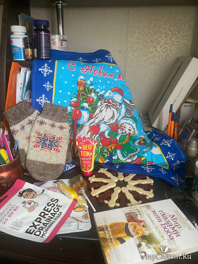 Сейчас поближе покажу))) Наташа знает, что я кошатница и у меня Симонка есть)) Вот и ей подарочки, и книжка кошачья))