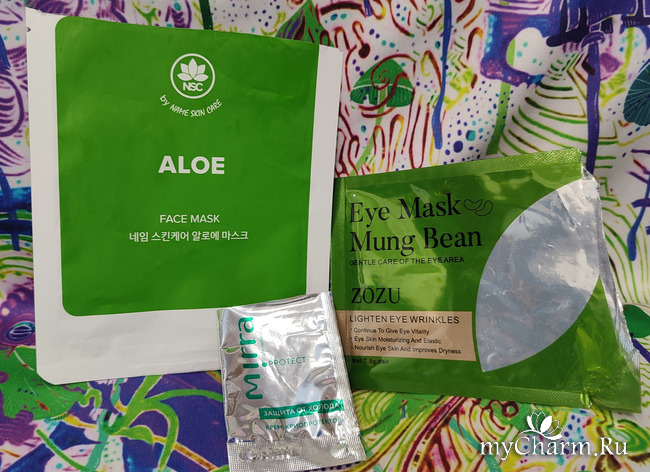 Разовые маски и пробники. Маска с Алоэ понравилась, хорошо увлажняет кожу.