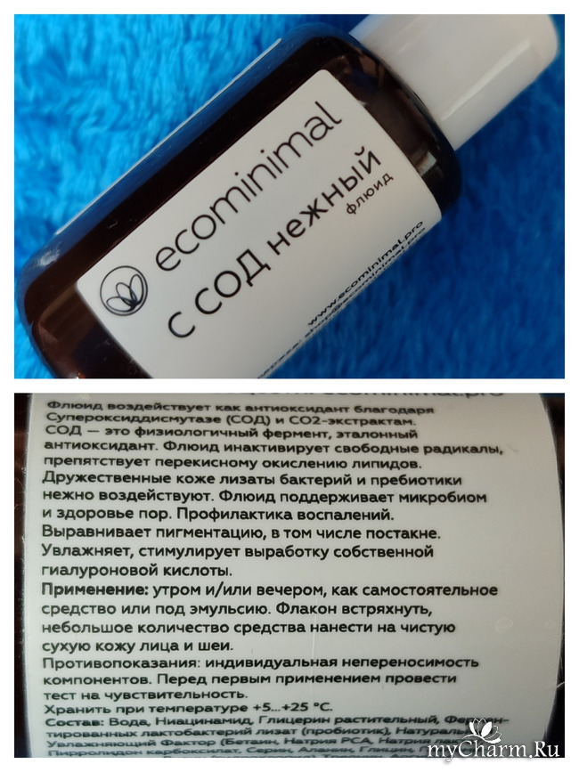 Флюид с Сод Ecominimal – хорошее средство, улучшает тонус кожи, выравнивает тон, освежает.
