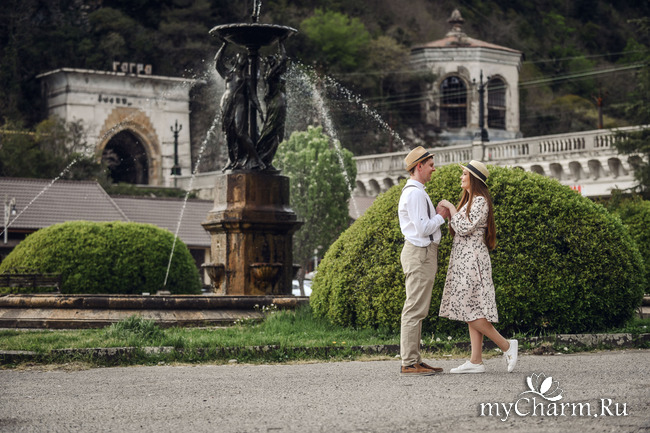До свадьбы мы вместе прожили ровно 3 года (день в день). Предложение поступило прошлым летом. С замужеством мы не спешили. Но в последнее время появилась необходимость узаконить отношения и получить официальный статус. Выбор даты пришелся мне. Сначала выбрала месяц - апрель, так как хотели поехать в Абхазию в несезон. В это время там мало туристов, можно спокойно погулять по достопримечательностям, заодно мы организовали фотосессию. Как здорово, что не было народу вокруг нас и не нужно было стоять в очереди на место съемки.
