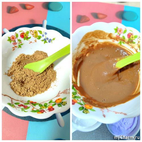 Порошок имеет мелкий помол. Развожу кипятком, наношу на 30-40 минут. Далее смываю шампунем.