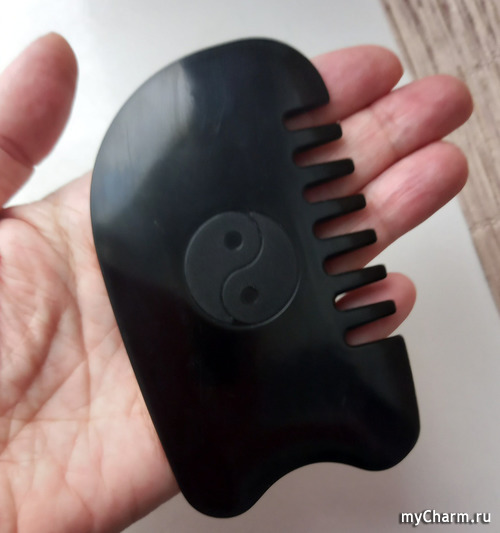 Еще для массажа головы, а зимой в период шапок он нужен больше чем летом, обзавелась гребешком гуаша.
