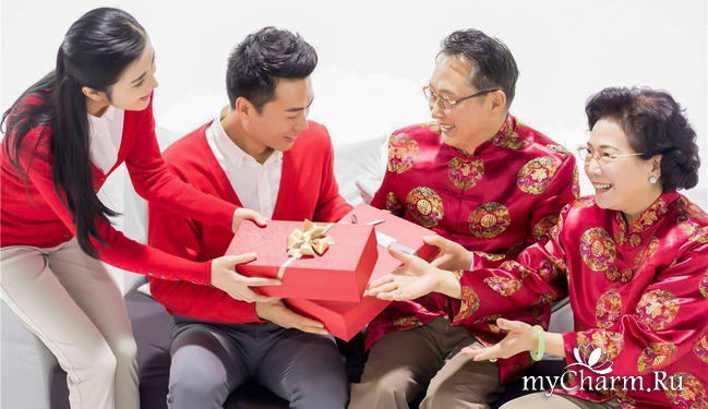Насчет одежды у китайцев все просто: цвет богатства у них красный, поэтому все члены семьи - в костюмах этого цвета:
