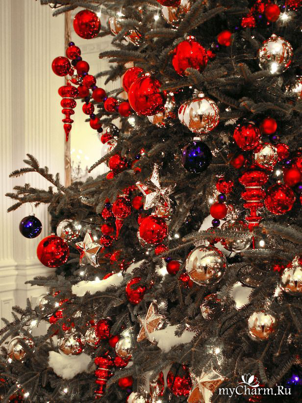 Игрушки на елке тоже обязательно должны быть красного цвета! Три красных шара, образующих на елке треугольник - -это традиция в украшении лесной красавицы!