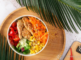 Поке боул с курицей – это легкое и сбалансированное блюдо, которое сочетает свежие овощи, злаки и сочное мясо. Оно пришло к нам из гавайской кухни и быстро завоевало популярность благодаря своей пользе и разнообразию вкусов. Ингредиенты: 150 г куриного филе 100 г риса (обычно используют жасмин или бурый) ? авокадо 50 г свежего огурца 50 г моркови... Читать полностью |
