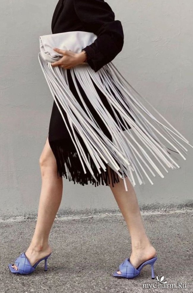 Бахрома по нижнему краю с намёком на бохо так же актуальна, но теперь бахрома имеет ооочень большую длинну, что сделает образ немного диким и весьма стильным.