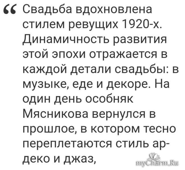 Гламурное торжество проходило в камерной атмосфере, с минимальным количеством гостей в усадьбе Мясникова в Санкт-Петербурге.