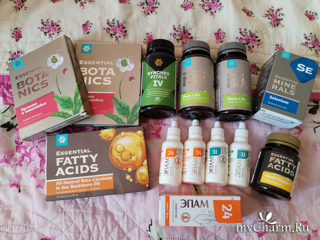 БАДы Сибирского здоровья, программа по лечению мастопатии: ортилия и зимолюбка (женское здоровье), СинхронВитал 4 (поддержка печени), очищающий фитосорбент, селен (противовоспалительный), натуральный бетакаротин и облепиха, Эпам-24 гинекологический и ЭПАМ-31 противофиброзный, Омега-3.