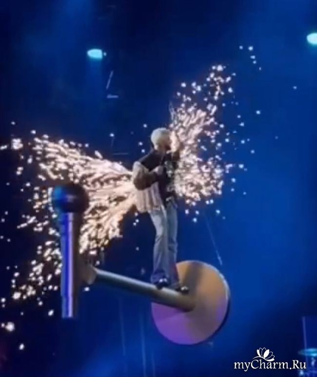 Так в конце апреля на большом концерте зала"Октябрьский"в Санкт-Петербурге, на артиста перекинулся огонь с подвесной платформы.