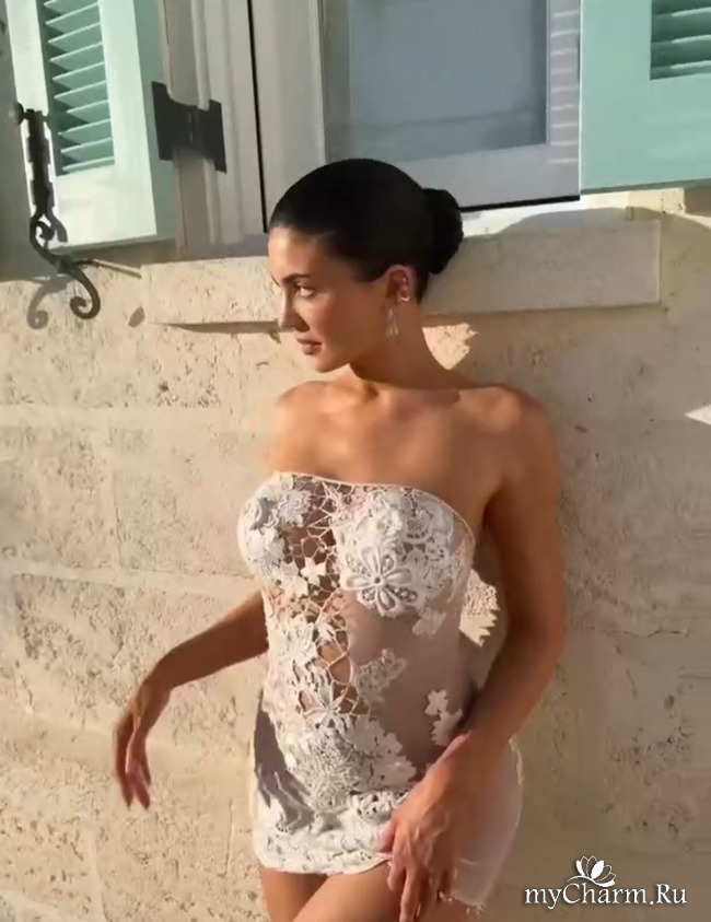 А, Кайли Дженнер словно знойная островитянка в бельевом платье.