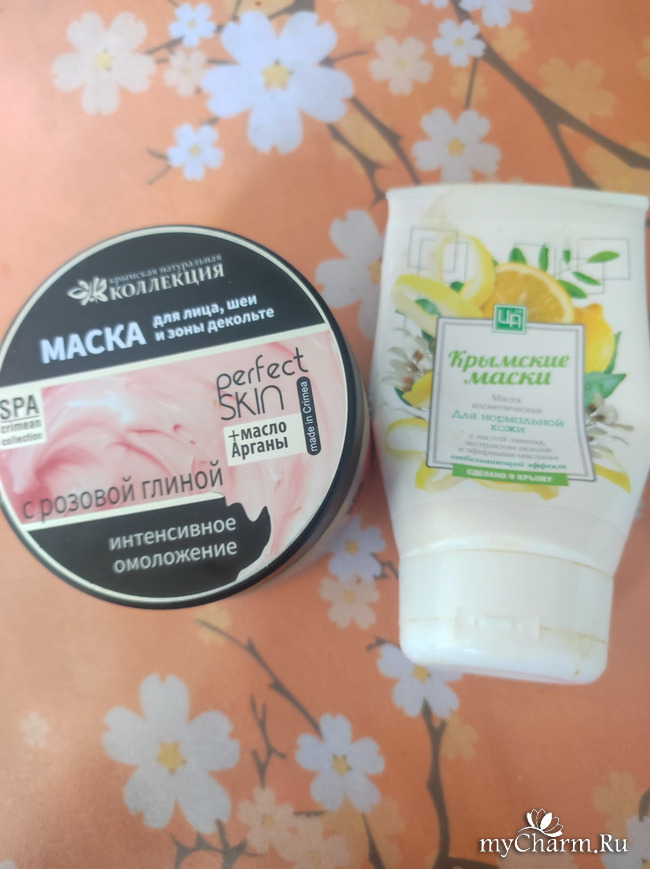 Маски. Розовая глина классная! очень нежно очищает, не сушит и не стягивает кожу. Лимонная никакая. В жару лицо охлаждает приятно, на этом всё