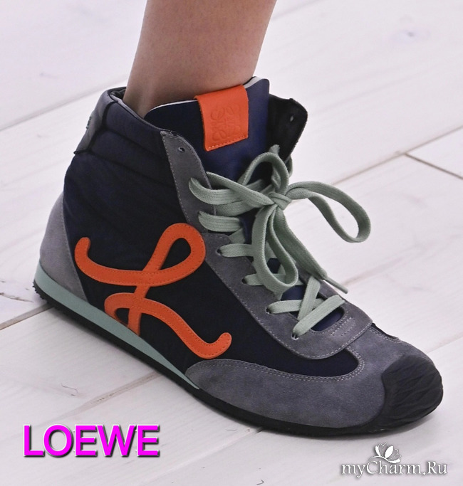 У перфекционистов LOEWE это высокие сникерсы на баскетбольную тематику 80х. с мягкими линиями и большим языком
