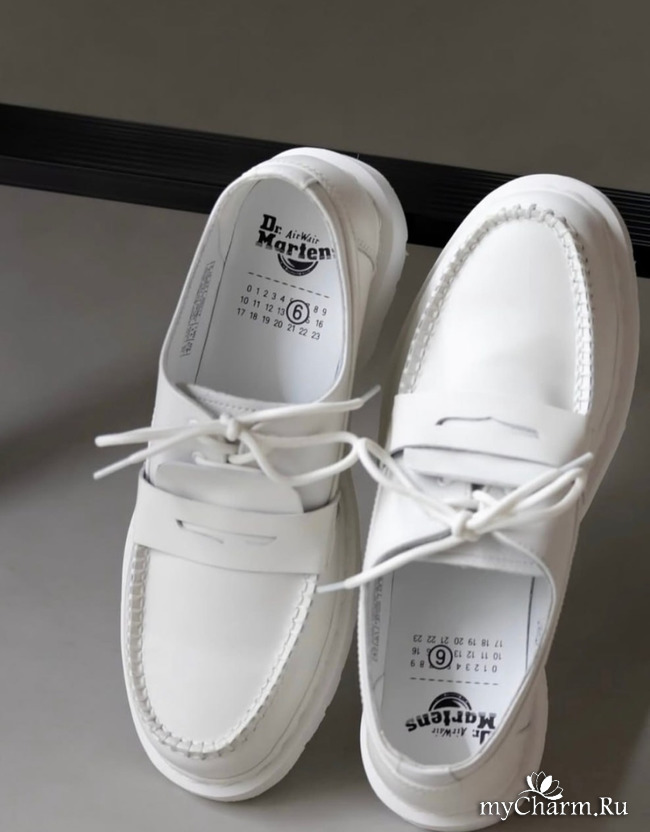 Пока выпустили только лоферы и берцы в бело-кремовых оттенках в сочетании гладкой и вирджинской кожи с фирменным тиснением ММ6.