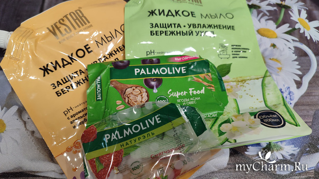 Мыло, как всегда, мое любимое и кусковое Палмолив. Хорошее, ароматное, не сушит кожу.