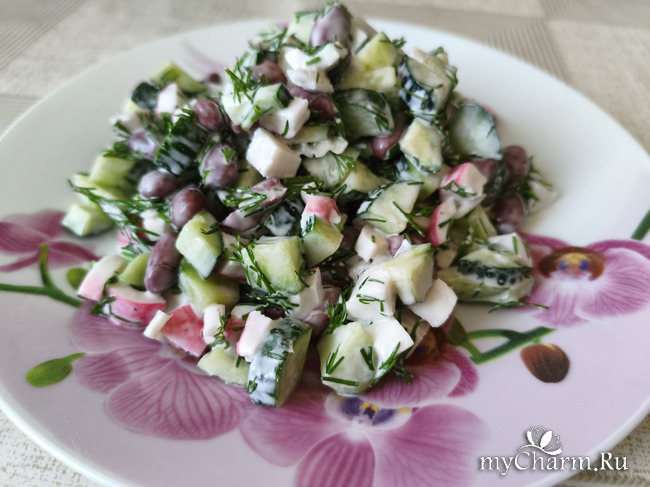 У меня мама любит в салат с крабовыми палочками кукурузу добавлять. С фасолью не пробовала, нужно будет сделать. Спасибо!