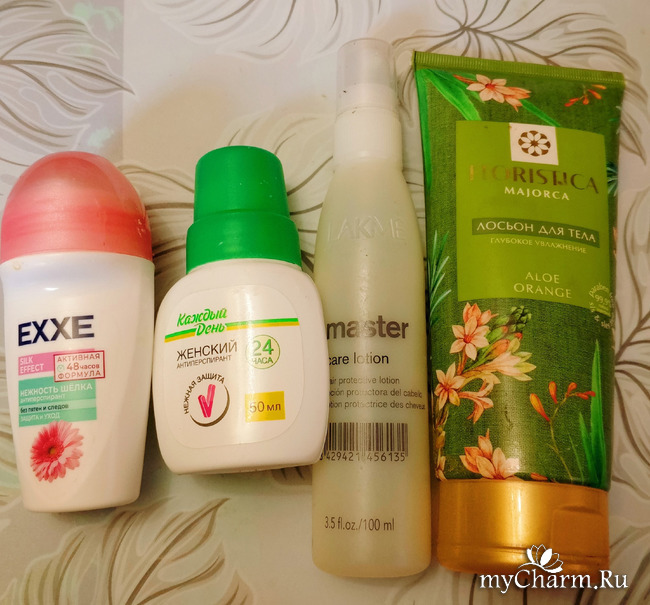 Дезодорант ЕХХЕ - мне нравится как он матирует кожу. Но есть одно НО - на черном белье остаются следы белого талька.