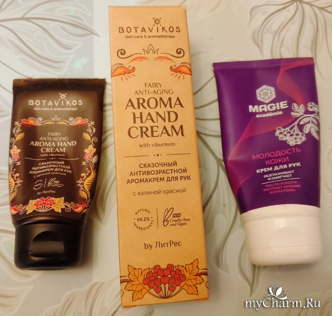 Аромакрем с калиной красной от Ботавикос - уж насколько я не люблю ароматы средств бренда, обычно у них всё кориандром отдает, но тут аромат просто восторг!!! И увлажняет ручки хорошо.