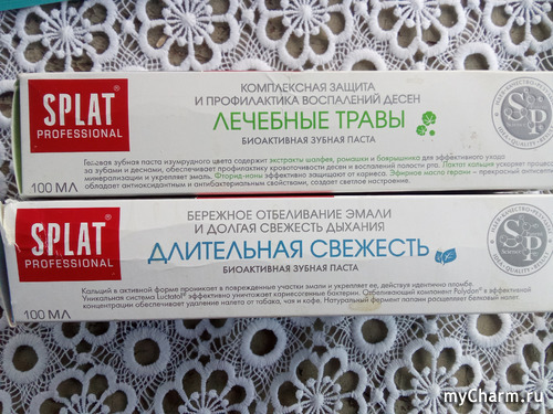 И сегодня мне хотелось бы рассказать вам о средствах, с которыми мы дружим довольно давно. Это зубная паста «Длительная свежесть» и «Лечебные травы» от Splat Professional.