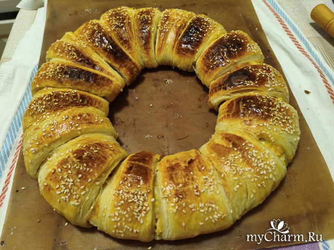 Дома нас ждал пирог - Рождественский венок, который мы вместе испекли.