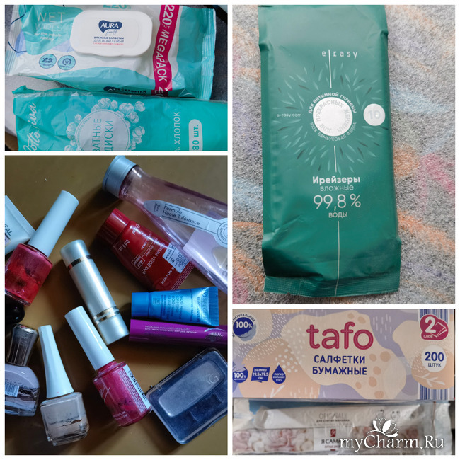 И опять же помощнички ввиде салфеточек для умывания, рукопротирания, спонжиков и дисков ватных