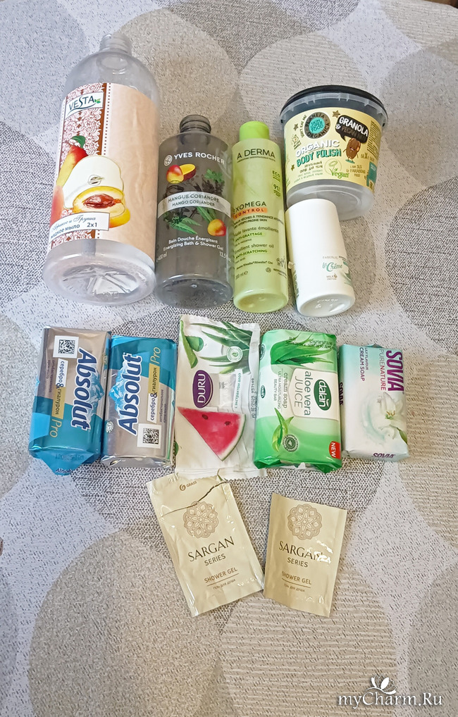 Средства для тела. Мыло расходуется в большом количестве мужем. Скраб для тела понравился, но для меня оч большой объём, долго пользовалась.