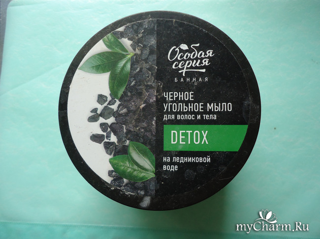 2. Черное угольное мыло для волос и тела на ледниковой воде под названием DETOX"