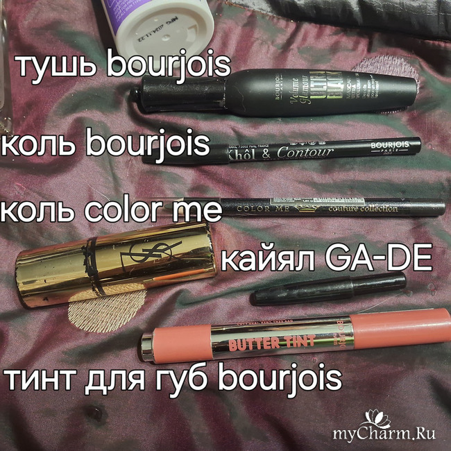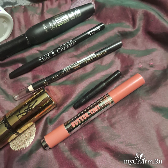 И BOURJOIS KHOL & CONTOUR, который идёт с точилкой, тоже приятный в нанесении и тоже сидит, как прибитый на межресничье и в качестве стрелок.