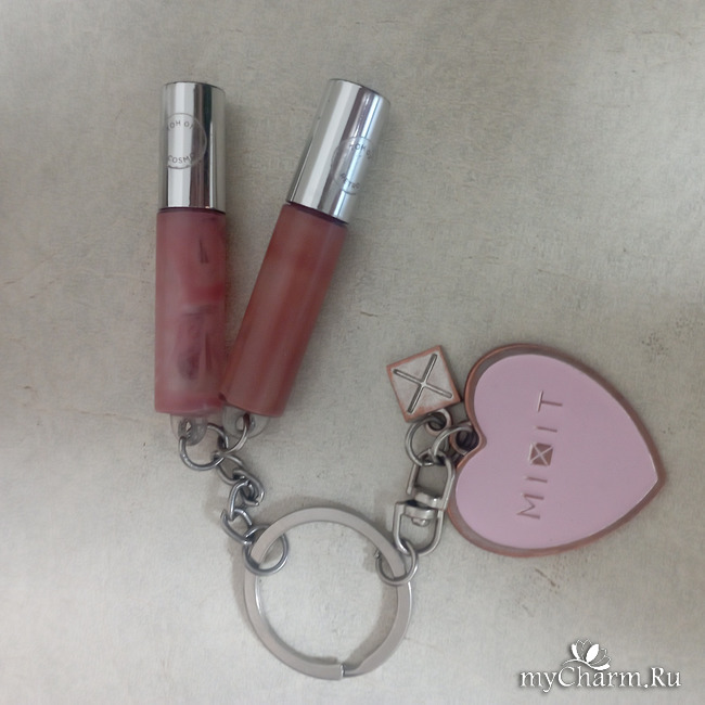 Брелок с блесками от Миксит два цвета глянцевые, не липкие, красиво ложится на губах, приятно пахнет. Отлично крепится на сумку, к ключам и было удобно носить с собой. Наверное ещё повторю.
