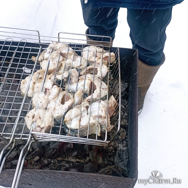 В начале марта у нас на Урале было холодно, даже 8 марта был сильный снегопад, мужчины убирали снег, в такую погоду жарили шашлыки, рыбу, постарались