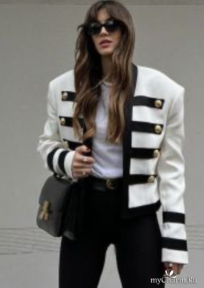 Весьма благородно и неимоверно дерзко. Такой жакет сам по себе уже является украшением, он прекрасно впишется, как в сдержанный образ, так и креативный.