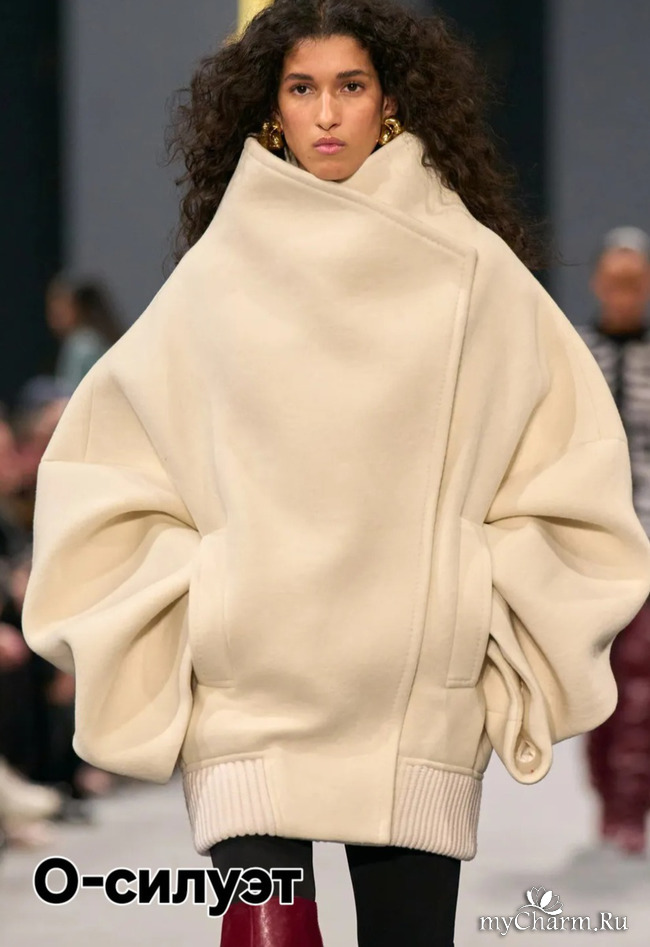 Если с оверсайзом никак нет желания распрощаться, то пальто О-силуэта, которые создают вокруг тела мягкий кокон, станут любимками.