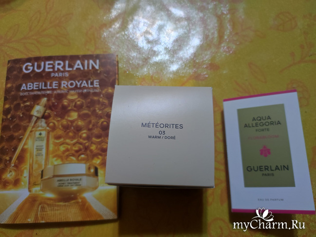 Герлен от сестры. Просила метеоры взамен моих старых, ну и кучу пробничков обрела в дополнение