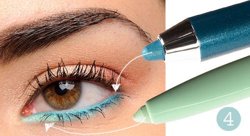 Цвет карандаша зависит от оттенка теней, которые вы собираетесь наносить. Естественно, он должен быть приближенным к самому темному тону, чтобы глаза стали поистине выразительными, но возможны варианты. Так, если в основе дымчатого макияжа будут голубые тени, можно подвести глаза синим, голубым или серым карандашом. Для этого широкой линией подведите верхнее веко, сужаясь к внутренним уголкам глаз, после чего, мягкой и тонкой линией подчеркните нижнее веко. При желании, можно визуально изменить разрез глаз, придав своим исходным данным красивую миндалевидную форму.