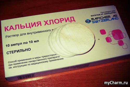 Пилинг - голливудская чистка: На чистое сухое лицо наносят раствор хлористого кальция, ждете, пока высохнет, потом наносите второй слой и снова ждете подсыхания. Намыливаете руки мылом и массируют кожу, скатывая катушки. Механизм здесь следующий: хлорид кальция взаимодействует с мылом (натриевая и калиевая соль высших карбоновых кислот), образуется хлорид калия или натрия и нерастворимая кальциевая соль высших карбоновых кислот, которая скатывается, попутно захватывая часть верхнего слоя кератиновых чешуек. Получается поверхностный щадящий пилинг.