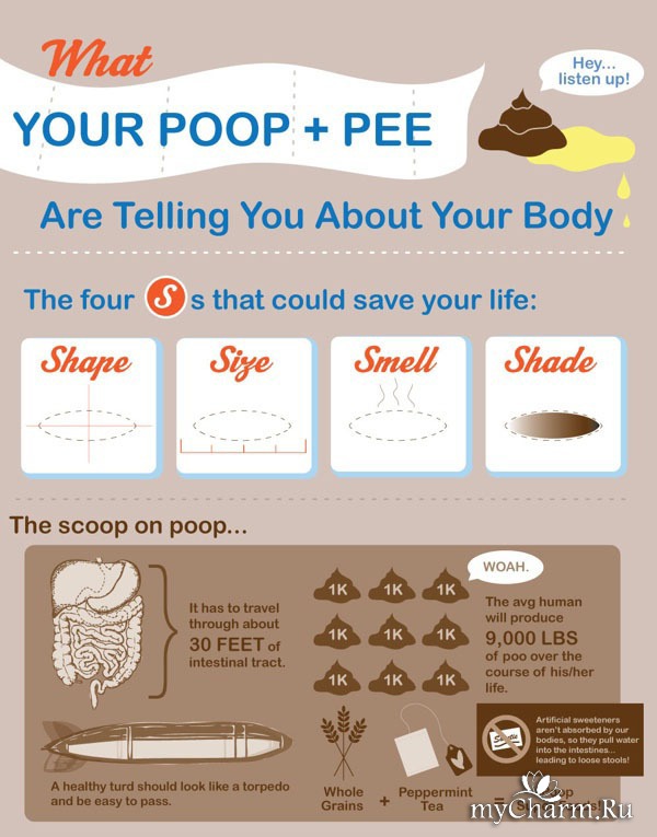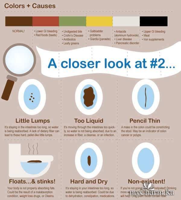 Ну, так вкратце, кто не понял: кал и мочу надо оценивать по цвету, размеру, консистенции и запаху (кстати, европейские унитазы не позволяют это сделать, поскольку там все вроде сразу уходит