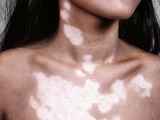 У моей свекрови в 15-16лет после нервного переживания-срыва (1948г её маму-вдову арестовали, а с свекровью остались три младших брата). Лицо,шея были совсем белые. Руки и ноги она старалась максимально закрыть летом. Поэтому пятна почти не заметны. Она никогда не загорала, а мы живем на юге Украины до лимана 40км до моря 60км.
