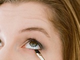 Шаг 5. Подведите верхнее веко коричневым лайнером. Лора снова делает интересный трюк: у неё нет жидкой коричневой подводки, и она делает её, смешав капли Визин с коричневым компактом (цвет становится насыщенным и свежим). Эту линию не делайте четкой, а к внешнему уголку немного растушуйте наверх и в складочку века.
