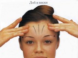 Средними и безымянными пальцами обеих рук проделайте массаж, направляя их вверх и в стороны, начиная с середины лба, как бы разглаживая морщины.