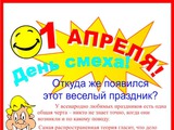 История происхождения праздника 1 апреля - День смеха 1 апреля – День невинных обманов, или День дурака Какова же история одного из самых веселых праздника. Почему именно первое апреля является законным поводом для шуток, смеха и розыгрышей, причем не только в России, но и в других странах... Читать полностью |