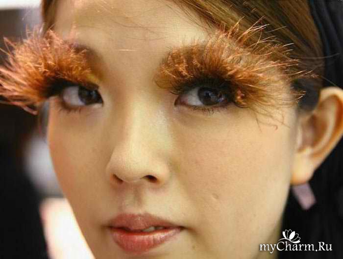 у нас в магазине одна тетка работает, у нее накладные ресницы и мой муж каждый раз над ней смеется, да и я тоже в общем-то, потому что из далека видно эти пардон коровьи глаза. все должно быть в меру я считаю.