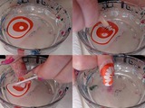 4. Выбрав несколько разноцветных флакончиков лака, капайте из них в воду краску в следующей последовательности: в центр - краску, которая должна будет доминировать в вашей мозаике, по краям "главной капли" - все остальные краски.