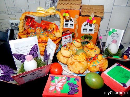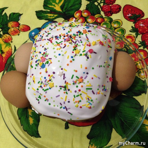 Я вчера зашла в магазин, посмотрела на готовые, вспомнила их вкус. И решила испечь сама. Купила посыпку и краску для яиц.