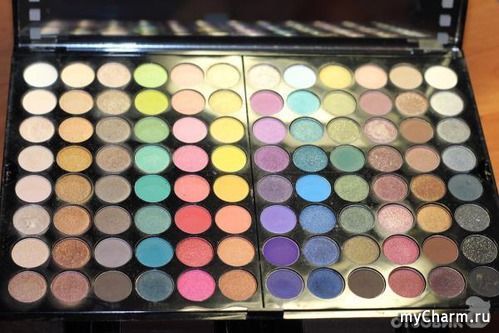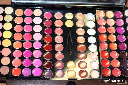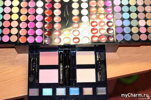 А также 4 оттенка румян и 6 оттенков теней кремовых. Плюс есть тушь, черный карандаш для глаз, коричневый карандаш для бровей и 4 кисточки для всего этого великолепия.