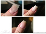4. Когда всё подсохло подпиливаем пилочкой не нужные кусочки и выравниваем поверхность ногтя.